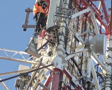 levage et pose de matériaux sur pylône